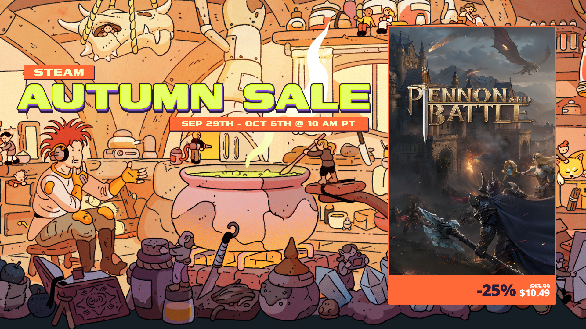 各位領主,《旗幟與戰火》即將於北京時間9月30日1:00-10月7日1:00(太平洋標準時間9月29日10:00-10月6日10:00)正式參與Steam的秋季特賣活動,歡迎大家購買!